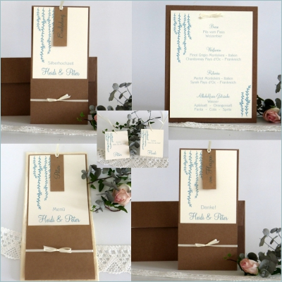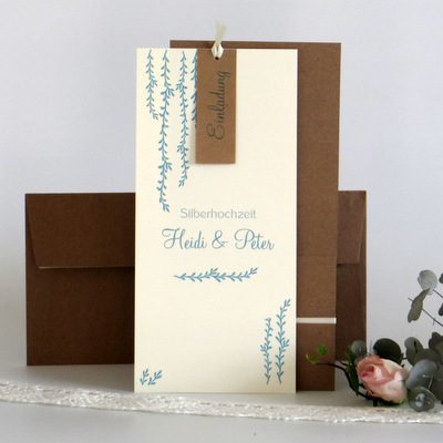 - beidseitig bedruckte Einsteckkarte (250g) mit Anhänger mit dem Aufdruck „Einladung“