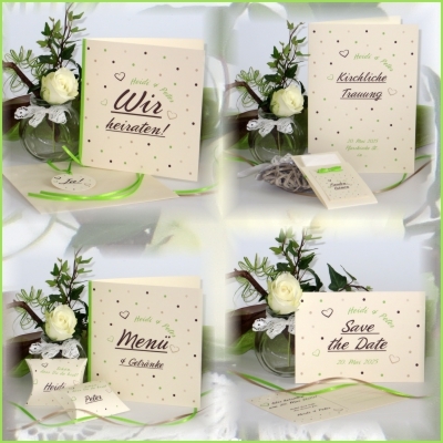 Fantastische Gruppentischkarte mit einem fröhlichen, frischen Design aus Punkten und Herzen.