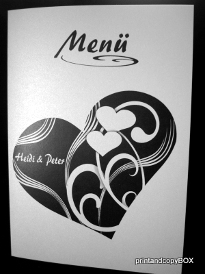 Da wir alle Drucksachen selbst entwerfen und herstellen, sind diese immer verfügbar. Sie können die Menükarte, Gastgeschenke... zu Ihrer Einladung zur gegebenen Zeit bestellen.