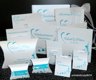 Tischaufsteller „Hochzeitsherz“ türkis – groß